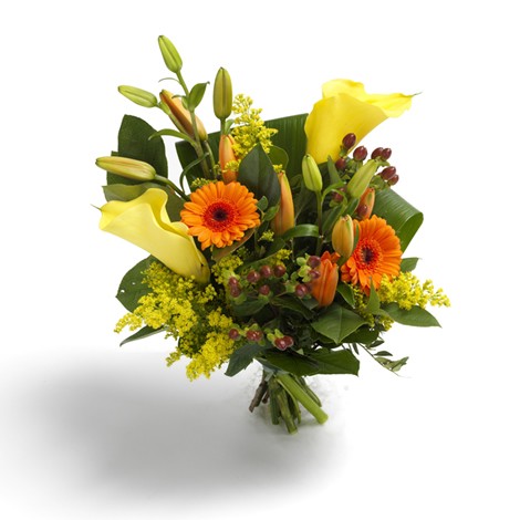 The Avalanche bouquet brings a wave of warm, sunny cheer. This delightful arrangement features a vibrant combination of yellow Gerberas, earthy orange lilies, and accent berries, artfully designed in a classic clear glass vase. It is an uplifting gift perfect for sending happiness, celebrating a joyful milestone, or simply brightening a home with its radiant, welcoming colors. Hand-delivered fresh by a local Teleflora florist to ensure maximum impact.