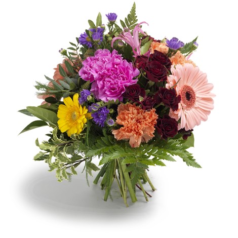 Flores y Ramos Teleflora - Opciones - La variedad de texturas, tonos y diversidad de flores de este ramo ofrece un ambiente festivo donde se mezclan rosas, illetes, gerberas, ásteres y nerine.