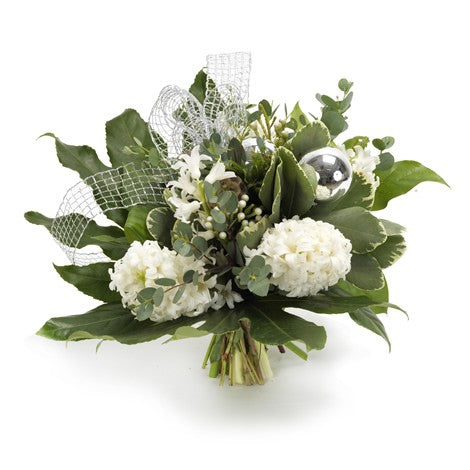 Teleflora Fleurs et Bouquets - Incienso - Una explosión de felicidad en tonos plata, blanco y verde. El cremoso jacinto blanco y fragante se funde con maestría con escabiosa, brunia, eucalipto y muchas otras esencias.