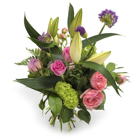 Teleflora Fleurs et Bouquets - Saisons - Un bouquet aérien et vibrant avec une touche de postmodernisme ! Lys, roses variées et hortensias+ sont spontanément réunis dans ce bouquet exotique.