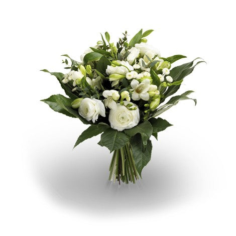 Teleflora Flowers and Bouquets - Belle - A fresh, pure bouquet with bright white roses, surrounded and enhanced by leaves and grasses that breathe life.